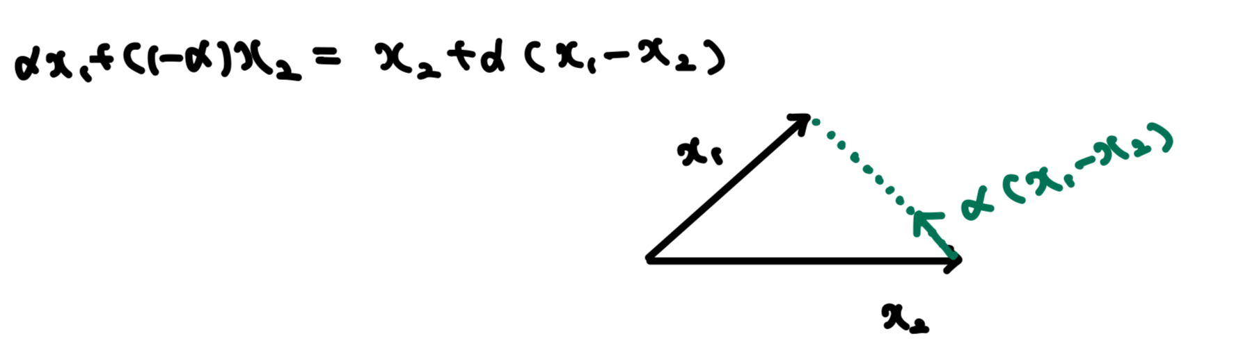 만약 $\alpha$가 $\frac{1}{2}$이라면, x1과 x2의 중간값의 함수값인 것을 쉽게 알 수 있다.