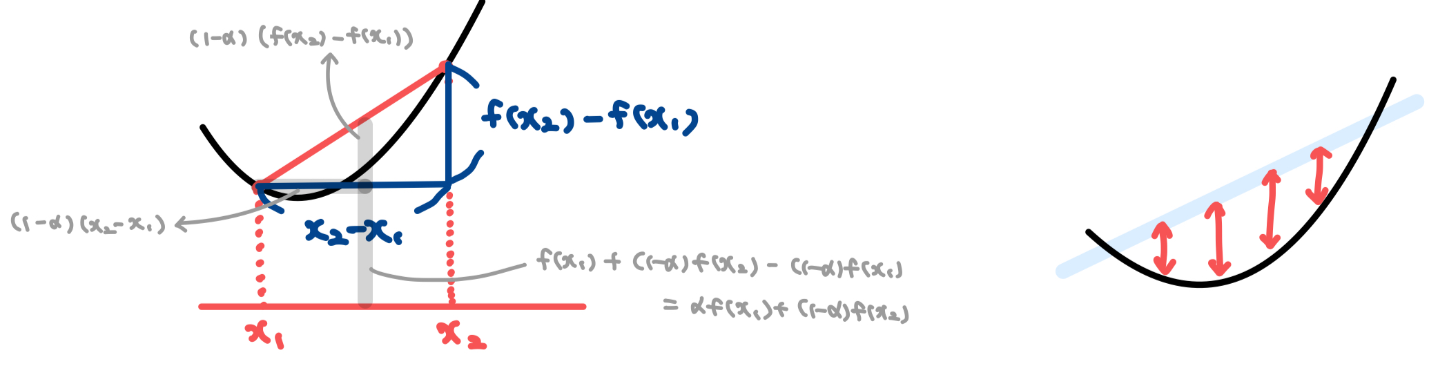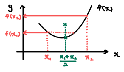 따라서, x1과 x2에서의 두 점을 이은 직선이 함수값보다 크다면, convex하다고 말할 수 있다.