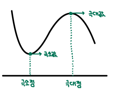 즉, 극소와 극대는 미분이 0인 지점의 값을 의미하는 것이 아니다.