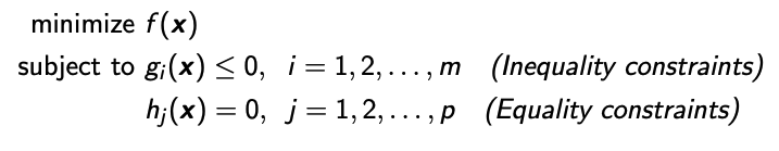 위의 식은 unconstrained optimization이라면, convex optimization에서 정의하는 식은 다음과 같이 constrained optimization이다.